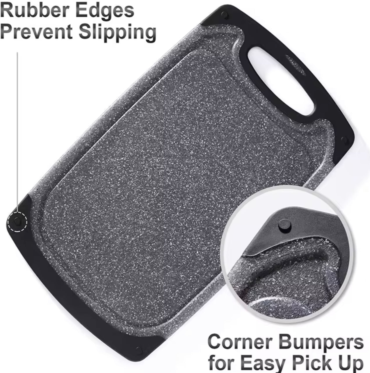 Cutting Boards for Kitchen w/Juice Groove, Non Slip Handles, Reversible - Plastic Cutting Board Set of 3, Dishwasher Safe Cutting Boards for Chopping Meat, Veggies, Fruits, Non-Slip (Gray/Black)