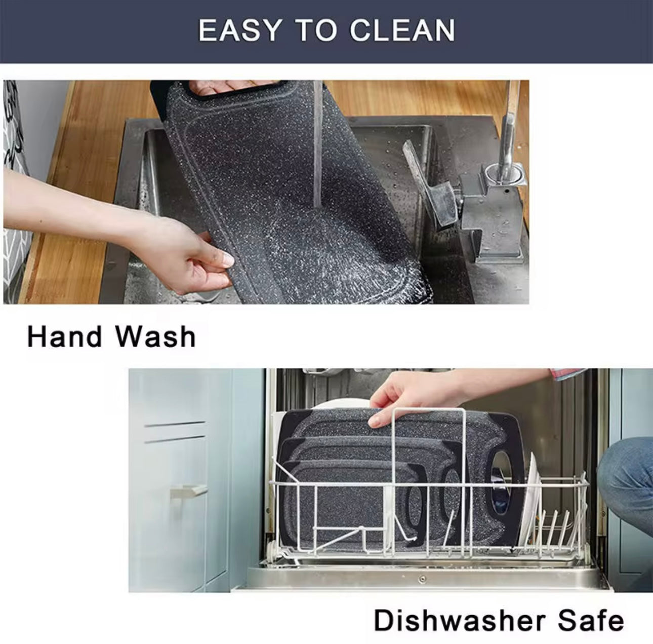 - PERFECT SET - Three sizes for every kind of cooking! You'll get one large, one medium, and one small cutting board in your set. Perfect for multi-course meals or all-day meal prep. - PREP FRIENDLY DESIGN - Chopping board set includes juice grooves that prevent liquid from spilling on the counter for a kitchen safe, drip-free experience. - EASY TO CLEAN. Dishwasher safe and won't splinter, crack, or peel. Ideal home for prepping and cooking!